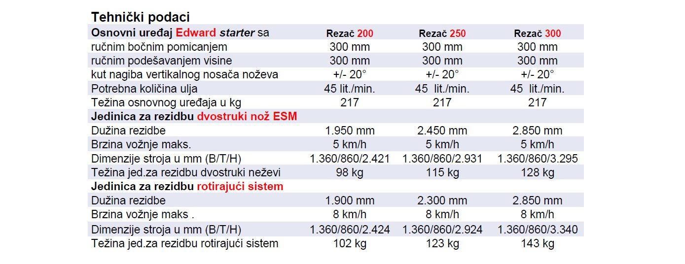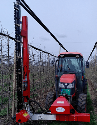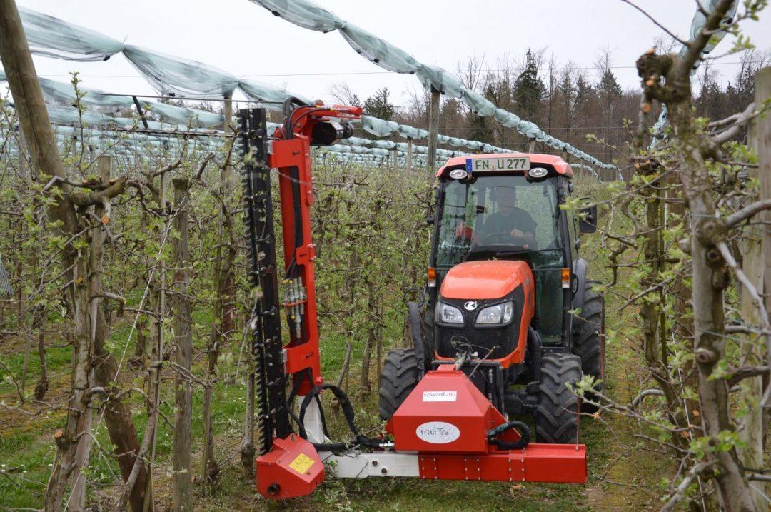 Model EDWARD kompanije FRUIT TEC je moderna mašina za mehanizovanu rezidbu voća. Rukovanje se vrši preko upravljačkog uređaja u traktoru. Moguće je ručno podešavanje visine 300 mm i ručno bočno pomicanje 300 mm. Hidrauliično podešavanje nagiba 20°u svim pravcima čini ovaj uređaj veoma prilagodljivim raznim uslovima.
