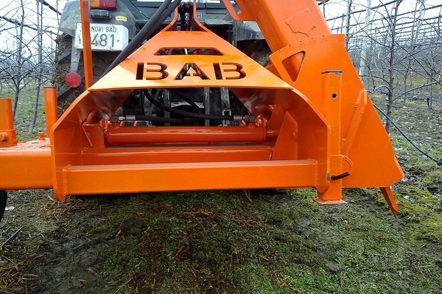 BAB podrezivač žila koristi se za kontrolu bujnosti u voćnjacima. Ugao noža tj. podrezivanja postavlja se od 20-45° u odnosu na vertikalnu osu. Nož je izrađen od visoko kvalitetnog čelika koji se pomoću hidrauličnog cilindra izvlači i uvlači.