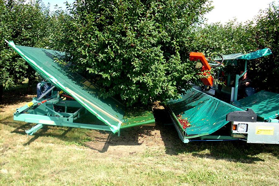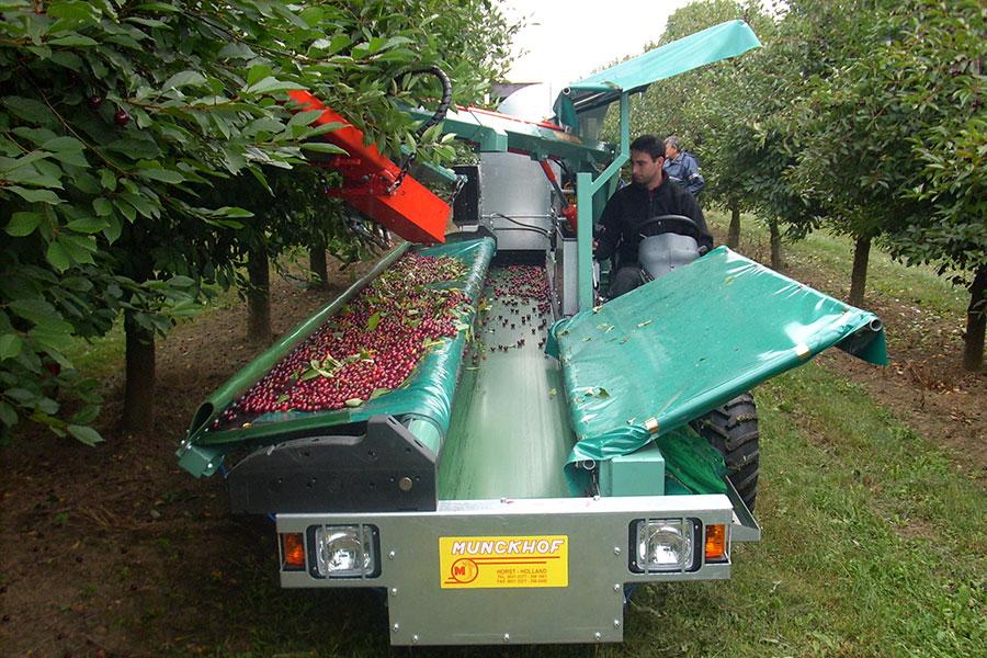 MUNCKHOF tresač za voće je potpuno automatski, samohodni model sa prikolicom za boks palate za obrane višnje. Lišće i grane su potpuno odvojeni od plodova. Tresač vrlo energično trese stablo i otresa plodove. Frekvencija i amplitude tresača se mogu prilagoditi različitim uslovima berbe. Pored višanja, koristi se za berbu šljiva, maslina, kajsija i drugog voća za industrijsku namenu.